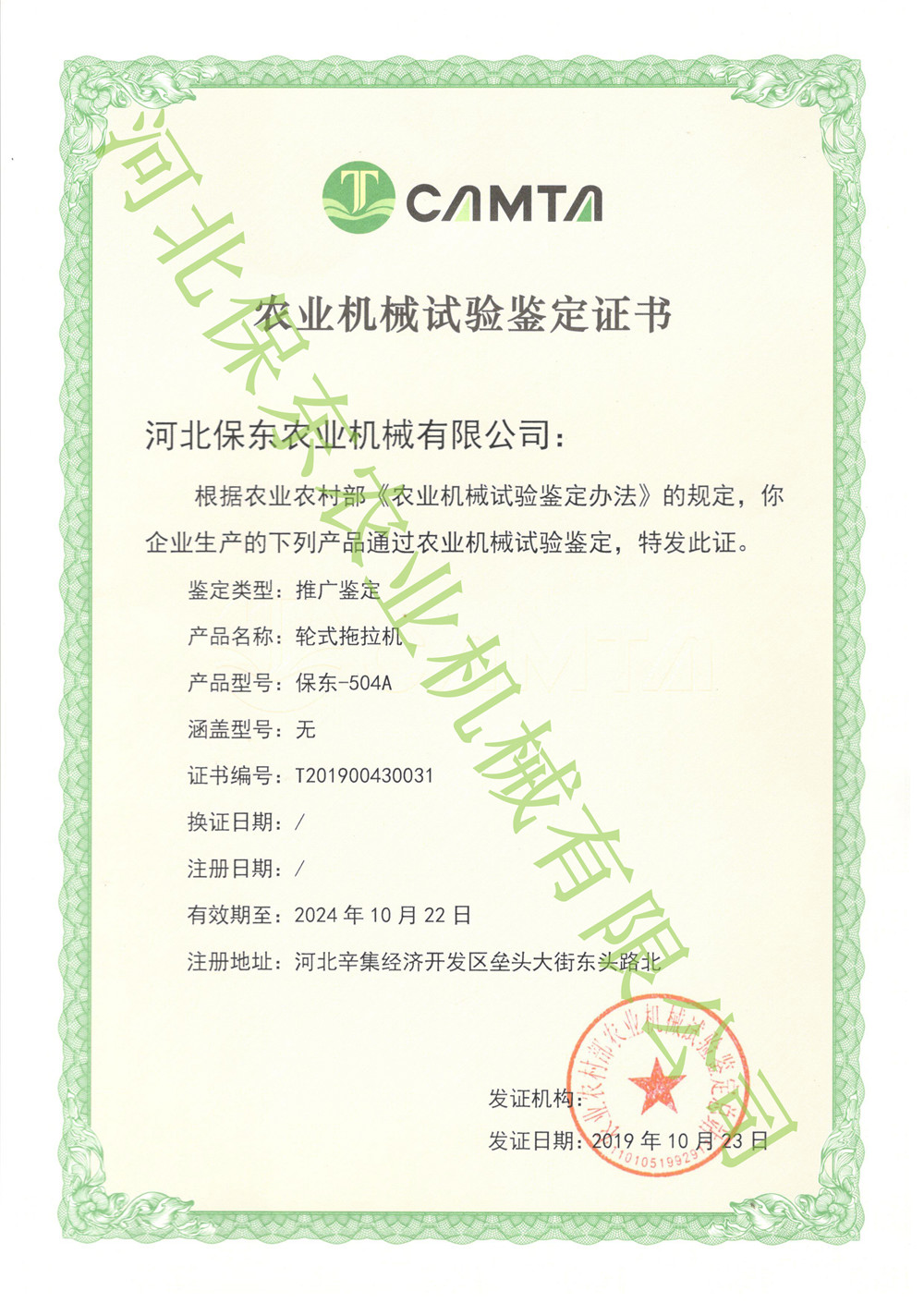 河北保东农业机械有限公司成立于2006年,坐落于“中国皮都”河北省辛集市,地理位置优越,来往交通便利。于2018年斥资3000万在辛集市省级技术开发区兴建新厂,建筑面积占地两万平方,并正式启用。同年被定为“2018辛集重点项目”,设有一套完整的装配流水线,并规范各项管理制度,从源头上保证了产品的质量、交货期和故障率。